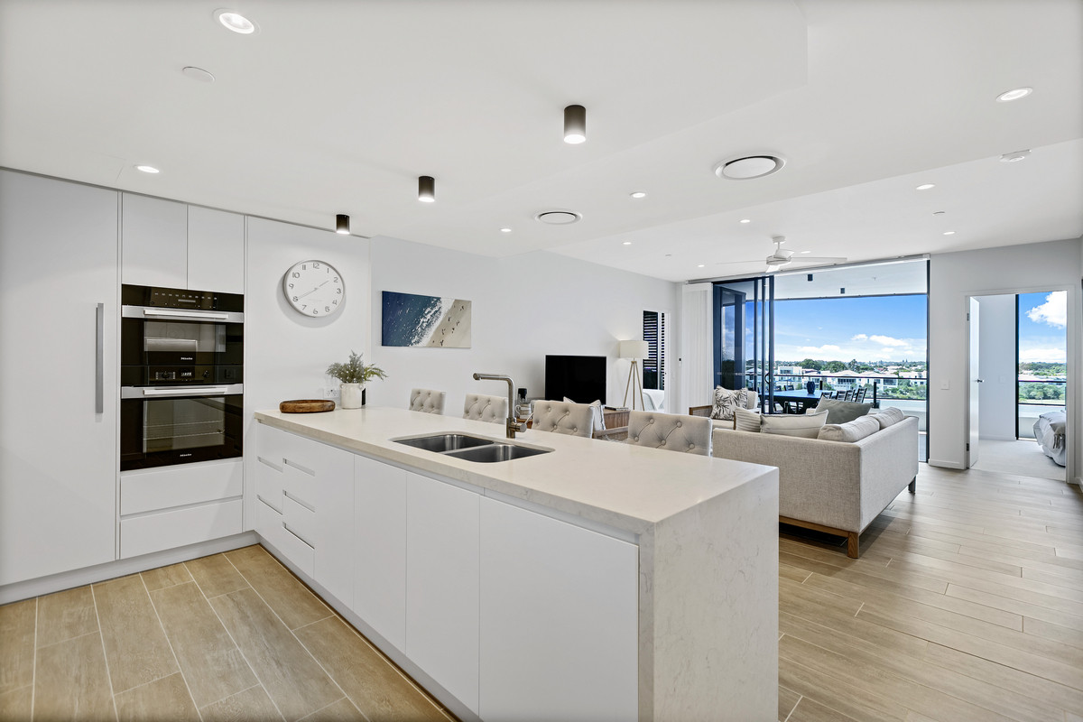 The apartment is bright & airy with ample storage, stone bench tops, Meile kitchen appliances & ducted air-conditioning & block out blinds throughout the property.
